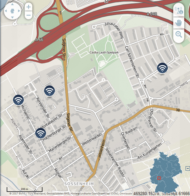 Sie befinden sich in der Michaelstraße, in der Renneroderstraße, in der Carl-Sonnenschein-Straße, im Sossenheimer Weg und in der Kurmainzer Straße. Genau zu sehen ist das über den genannten Link, der von der Seite der Stadt Frankfurt zu einer Übersichtskarte des Bundesministeriums für Verkehr und digitale Infrastruktur führt. Ein Klick auf den jeweiligen Hotspot verrät, wer ihn betreibt und zu welchen Bedingungen er nutzbar ist.