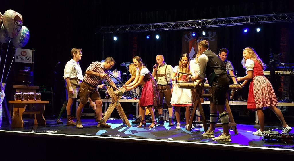 In einer Musik-Pause moderierten Charly Brech und Dr. Martin Fay, im Hauptberuf Zahnarzt mit eigener Praxis in Frankfurt, 1. Vorsitzender des Skis-Clubs Sossenheim, den „Sossenheim-Bayerischen-Dreikampf“. Drei zufällig zusammengestellte Paare maßen sich im Baumsägen, Maßkrug-Stemmen und Maßkrug-Austrinken. Den unter viel Anfeuerungsrufen ausgetragenen Dreikampf entschieden „Martina und ihr Schnelltrinker“ für sich. Sie gewannen Eintrittskarten für das nächste Oktoberfest.