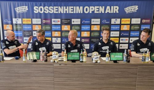 Für das Sponsoring ist federführend Sebastian Schönherr, Co-Head & Head of Marketing Arbeitskreis Sossenheim Open Air, mitverantwortlich. Er betonte das es wichtig war und ist, neben dem Hauptsponsor noch weitere Sponsoren zu gewinnen und das sei gelungen, „wie man auf der Tafel hinter mir sehen kann“. Er stellte das Maskottchen, einen kleinen Bären vor, sowie ein SOOPA-T-Shirt mit der Aufschrift „Bärenstark“, das in den Verkauf kommen soll, „für jedes verkaufte T-Shirt gehen 5,- Euro in einen Spendentopf für einen wohltätigen Zweck!“