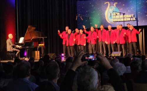 Mit „The Rose“ eröffnete der Frauenchor den zweiten Teil des Jubiläumskonzerts. Es folgten „Moon River“ und „Oh Shenandoah“. Die Hofsänger starteten im zweiten Teil mit „Ol´ Man River“. Es zeigte sich jetzt auch, dass zahlreiche Solisten mit toller Stimme den Chor tragen, und sie bekamen für ihre „Solis“ kräftigen Applaus mit Bravorufen. Und es wurde vieles mitgesungen. Beeindruckende Ruhe allerdings bei „Hallelujah“ von Leonard Cohen.