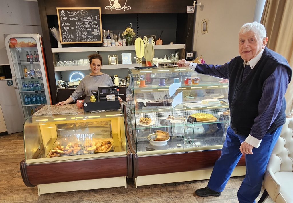 Diana Aboyan und Stammgast Günter Pierson im Coffee House „Cup of Grace“. Öffnungszeiten und weitere Info unter www.cup-of-grace.de Foto: Krüger
