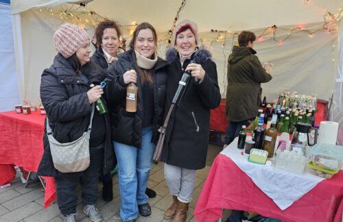 Vom Kinderpunsch über Glühwein, heißen Äppler und Speiseangeboten bis hin zum Eierpunsch, gab es so ziemlich alles, was man auf einem kleinen Weihnachtsmarkt finden möchte. Zum Angebotenen gehörten selbstverständlich auch Weihnachtsschmuck, Spielzeug, Gestricktes, Gehäkeltes und Gebasteltes, Gebäck und Schmuck, sowie Liköre aus eigener Herstellung. Und Kaffee und selbst gebackenen Kuchen gab es selbstverständlich auch.