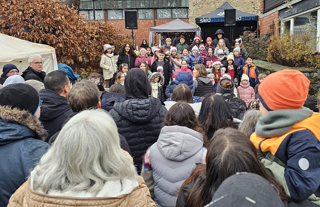 Bereits um 15.00 Uhr hatte der Schülerchor der Henri-Dunant-Schule unter der Leitung von Anne Rumpf seinen Auftritt. Begleitet von Schulleiter Ulrich Grünenwald und Lehrerinnen sowie von Eltern und Großeltern, war es wieder ein belebender Auftritt mit viel Applaus.