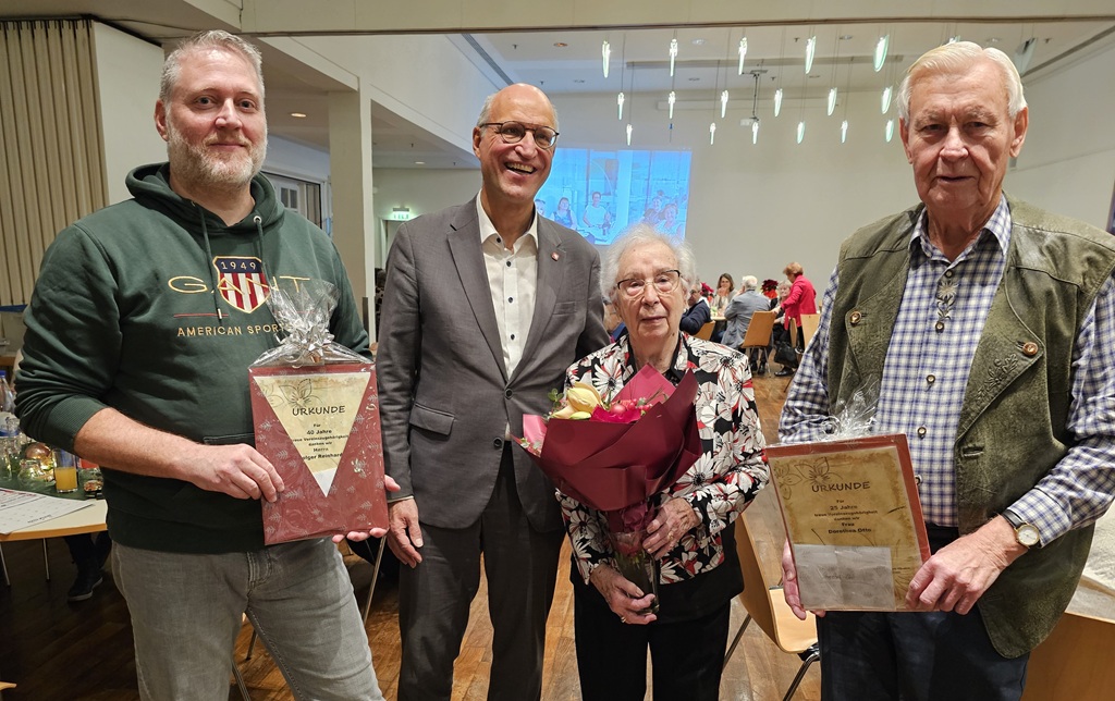 Jetzt spielte wiederum das Musik-Duo Erika, Gesang und Norbert, Tenor-Saxophon, bevor die Ehrungen auf dem Programm standen. Geehrt wurden, soweit anwesend, Wilfried und Doris Otto für 25 Jahre, Holger Reinhardt, Helga Foerster und Tochter Tanja für 40 Jahre treue Mitgliedschaft.