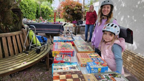 Überall in unserem Stadtteil, Frankfurt-Sossenheim, waren am vergangenen Sonntag, von 10 bis 15 Uhr, wieder zahlreiche Menschen, Groß und Klein, unterwegs, viele auch mit dem Fahrrad, um die nichtkommerziellen Hofflohmärkte zu besuchen. Ein sehr vielfältiges Angebot, von Kleidung über Haushaltswaren und sonstigen Gebrauchsartikeln bis hin zu Büchern und Spielzeug, waren im Angebot, aber auch Snacks und Getränke oder auch Kaffee und allerlei Kuchen.